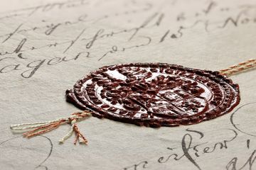 Seal: Embossed sigil of Thentis, mountain and hawk above open scroll
